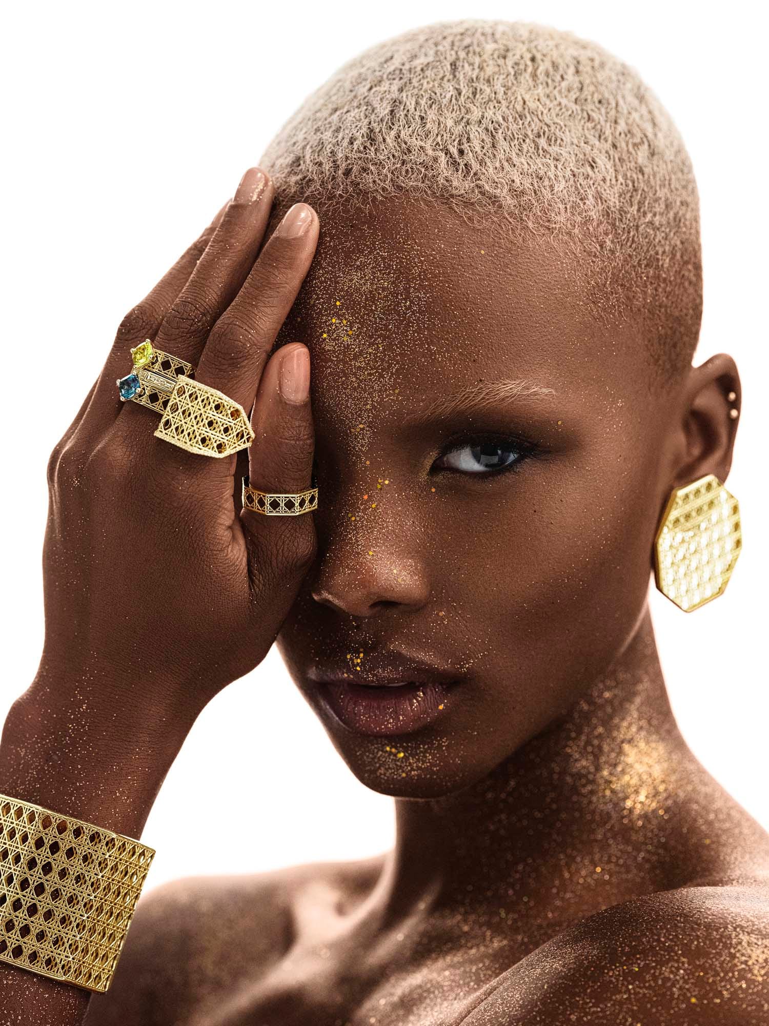 MoAnA: The Doudou collection draws inspiration from the fish traps used in the Caribbean. The architectural layers and intricate craftsmanship reflect our culture’s beauty. “Doudou” means “sweetheart” in Creole, a term we use daily to express love and care.
